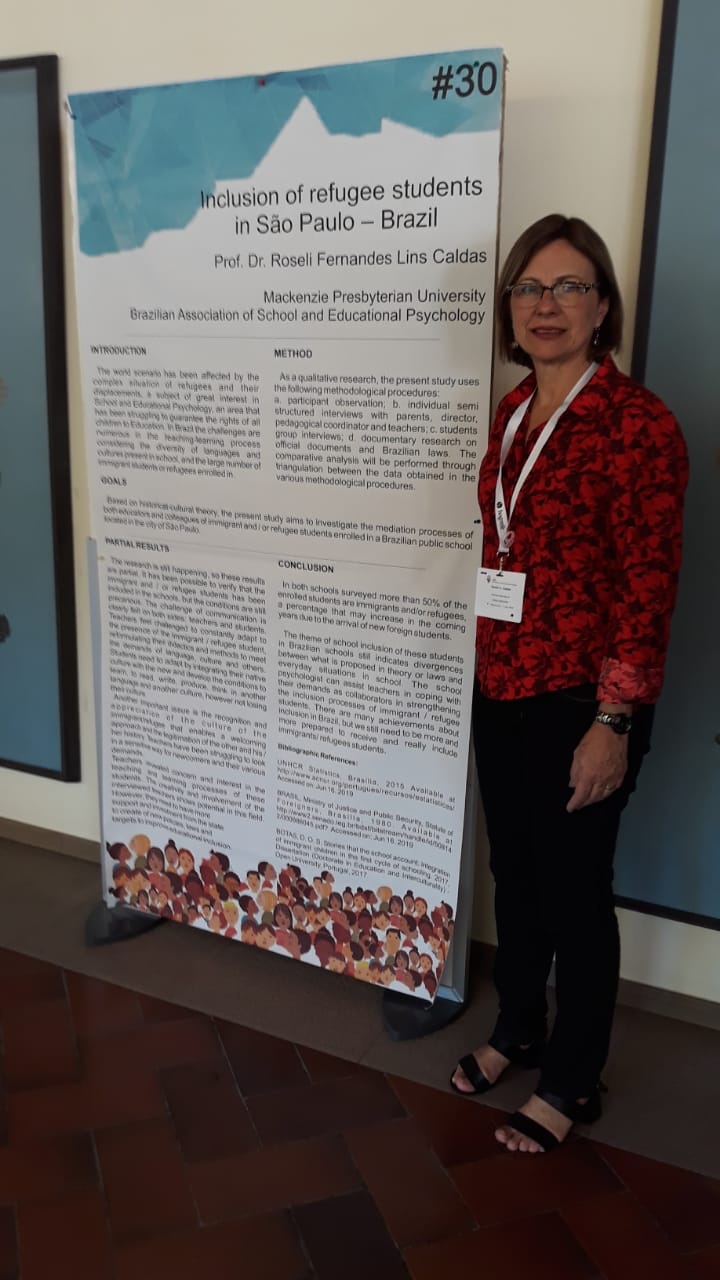 Roseli apresentou dados parciais da pesquisa denominada Inclusão de estudantes refugiados na escola pública brasileira: uma realidade?Esta temática teve ótima repercussão, considerando-se que muitos países têm sido desafiados diante da necessidade de inclusão dos alunos refugiados e/ou imigrantes nas escolas.